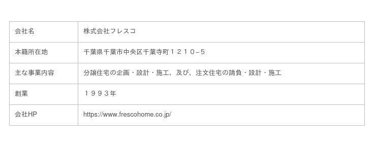 フレスコは創業以来、千葉県を拠点とし、宅地開発から用地取得、分譲住宅および注文住宅の企画、設計、施工、アフターサービス、リフォーム等の自社一貫体制を敷いた住宅総合会社です。「顧客繁栄、顧客満足」を追求する経営理念のもと、高品質で資産価値のある住まいを提供すると同時に、地球温暖化をはじめ、環境問題や社会問題などでSDGs貢献への取組みを積極的に進め、住宅を通じて「こころ豊かな暮らし」を提案し続けています。