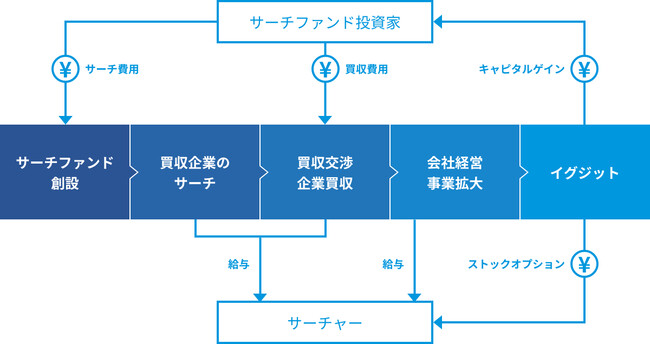 2018年5月に日本初のサーチファンドアクセラレーターとして設立され、サーチファンドへの投資、サーチャーおよびサーチファンドの支援、サーチファンドの周知、コンサルティング業務などの事業を展開しています。