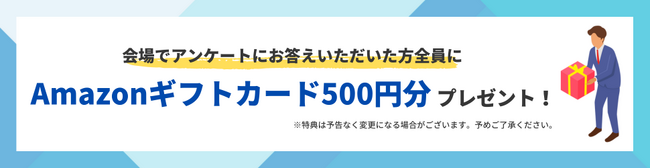 会場にてアンケートにお答えいただいた方全員にAmazonギフトカード500円分をプレゼントいたします!