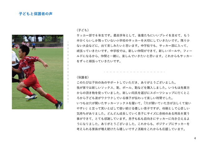 子どもたちにとってサッカーができることの喜びと幸せをぜひご覧いただけますと幸いです。