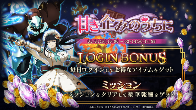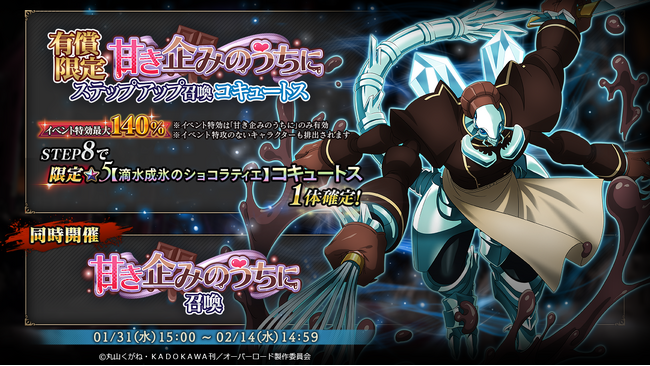 1/31よりイベント『甘き企みのうちに』を実施!召喚では『★5 【電光石火のショコラティエ】 ナーベラル』『★5 【滴水成氷のショコラティエ】 コキュートス』も登場します!