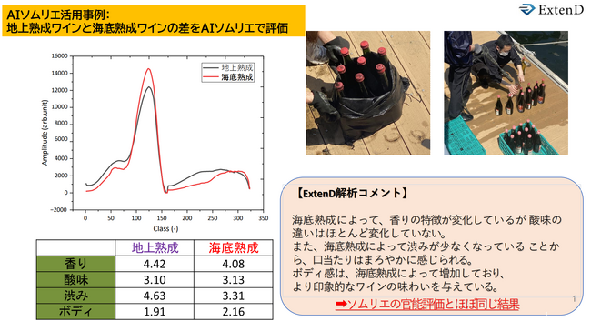 図 2.AIソムリエ活用事例:地上熟成ワインと海底熟成ワインの差をAIソムリエで評価