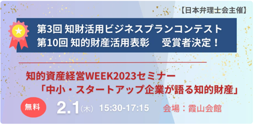 【日本弁理士会】第10回知的財産活用表彰・第3回知財活用ビジネスプランコンテスト受賞者の決定、受賞者によるセミナー開催について(2/1)