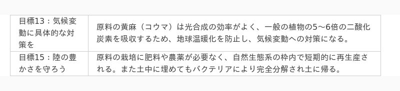 ジュートバッグはSDGsについて関心が高まり始めた2019年頃から環境にやさしいアイテムとして注目されるようになりました。原料のジュートは栽培過程から廃棄に至るまで環境への負荷が小さいため「エコ素材」と言われています。焼却しても有害ガスが出ない点や二酸化炭素の吸収力が高く地球温暖化を防止する点がSDGs17目標のうち2つに貢献できます。