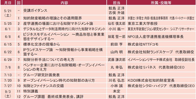 【受講実績】 精密機器製造業知財部、製薬会社研究員、コンサルティング経営者、外資系製造業知財部、食品製造業知財部、公的機関、経営企画部、弁護士等
