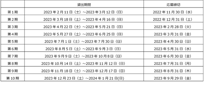 ※貸出期間は、車両の状態や社会情勢などにより変更する場合があります。予めご了承ください。
