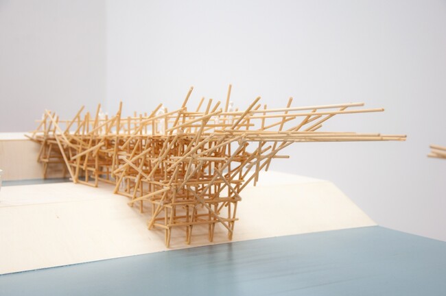 公共空間における彫刻的なインスタレーションで、世界的に知られる川俣正。ニュイ・ブランシュKYOTOのために2020年、伝統的な木組みの技法で作られる鴨川の橋をデザインしました。今年のニュイ・ブランシュでは、鴨川の両岸に木組みの橋の一部が作られます。