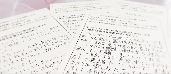 ※「おくってフォトブック」へ寄せられたアンケートハガキより抜粋