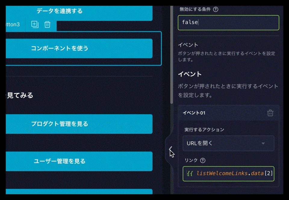 2022年4月25日に正式リリースをしてから多くのプロダクト開発の現場で実際に使っていただく中で、より具体的な利用シーンや特定の課題などが明らかになってきました。UIウィジェットをドラッグ&ドロップし、データフローと呼ばれる一連の処理をそれらに紐付けるという仕様はそのままに、細かいチューニングを多数行いました。