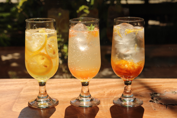左から、オーガニックレモンスカッシュ、トロピカル酵素スカッシュ、甘夏スカッシュ
