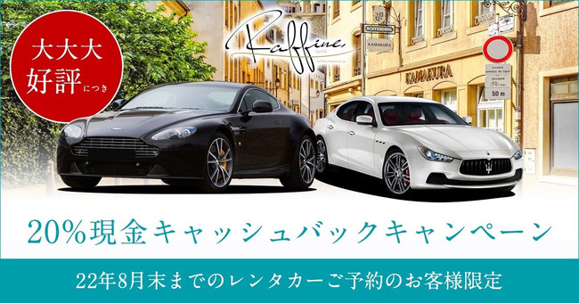 株式会社米自動車(本社:東京都港区、代表取締役:米 武士、以下:YONEMOTORS 「ヨネモータース」)が運営する高級輸入車レンタルサービス「ラフィーネレンタカー」は、2022年5月31日(火)に終了を予定していた独自のGoToキャンペーンを延長し、2022年8月末までにご予約いただいたお客様を対象に現金を20%キャッシュバックします。ガソリン価格や首都高速道路の通行料金など、様々なモノの値上げが続く中、日頃からご愛顧いただいているお客様の負担を少しでも軽減したいという想いから、キャンペーン期間を延長します。