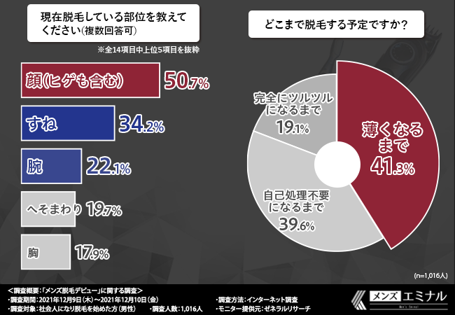 そこで今回、メンズ医療脱毛クリニック『メンズエミナル』(https://mens-eminal.jp/)は、社会人になり脱毛を始めた方(男性)を対象に、「メンズ脱毛デビュー」に関する調査を実施しました。