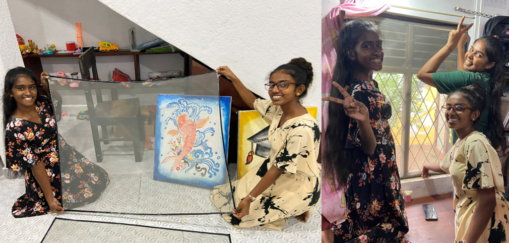 孤児院の少女達が自作の簡易網戸を窓に取り付けました。