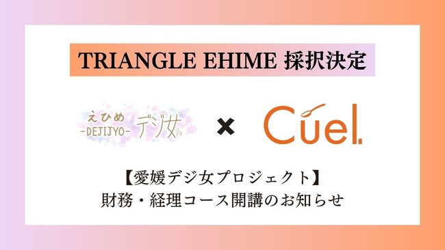 女性専用オンライン経理スクール株式会社Cuel(代表取締役:鈴木/以下、Cuel)は、NPO「愛媛デジ女プロジェクト」(代表:飯野)とともに、愛媛県デジタル実装加速化プロジェクト「TRIANGEL EHIME」に採択されましたことをお知らせいたします。