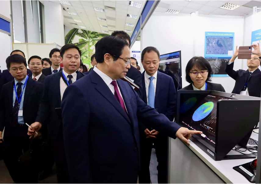 また、ブースにはベトナムのファム・ミン・チン首相も来訪し、GOSATを活用したビジュアライザーをご覧いただきました。衛星データを活用した気候変動観測や、日越間における衛星データ連携の可能性に高い関心が寄せられていることが伺えました。