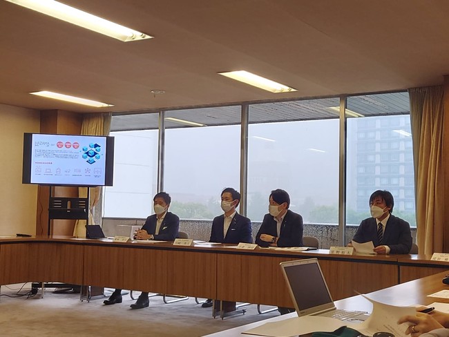2022年5月27日、永田町の自由民主党本部で実施した記者発表会には、小倉將信青年局長・塩崎彰久青年局政策広報副部長・川崎ひでと政策広報副部長とともに、当社の代表取締役社長の星野が出席いたしました。