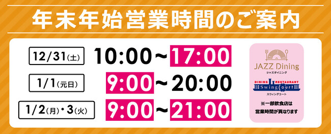 2022年〜2023年 年末年始の営業時間