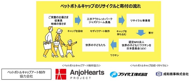 なお、ご持参いただいたペットボトルキャップの一部は、ギネス世界記録™に挑戦するパネルのパーツとして使用するとともに、パネルの展示期間終了後にはご持参いただいた全てのキャップをリサイクルし、ワクチンに変える活動に寄付いたします。