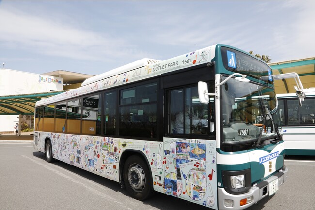 20年分の『思い出』と20年後の『夢』を乗せて走るラッピングバスを運行しました。ラッピングデザインには、三重県桑名市内にある七和保育園・長寿認定こども園・マリア・モンテッソーリ幼稚園の園児たちや、館内で開催したワークショップに参加の子どもたちが描く20年後の『夢』の絵と、館内従業員やお客さまによるジャズドリーム長島との『思い出』や『感謝』のメッセージコメントをデザイン。