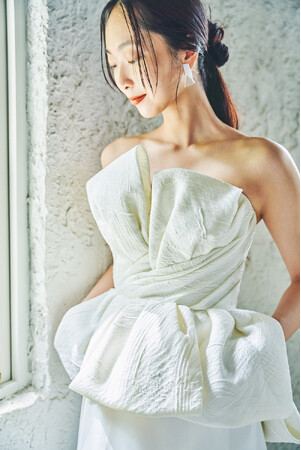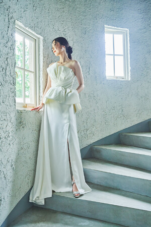 パンデミックの影響で限られた親しい家族や友人だけを招待したアットホームなウェディングが増えました。また、そんなアットホームなウェデイングでは、ゲストと近い距離でパーティを楽しめる、スレンダーのドレスが人気に。結婚式をしない選択をしてもフォトウェディングをするカップルは増加し、結婚式の前に迎える前撮りもSNS(InstagramやTikTok)に投稿するために行う人が増えています。ワンピースが主流のウェディングドレスですが、今回のコレクションでは、そんなフォト等でのスタイリングのバリエーションを求める現代花嫁のニーズに応えられる" セパレートタイプ "のドレスを3型発表いたします。トップスとスカートの組み合わせ次第でそれぞれ3通りのスタイリングが楽しめます。