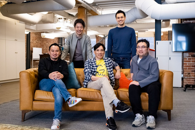 写真前方左から今野穣、堀義人、高宮慎一後方左より福島智史、湯浅エムレ秀和(US拠点にて撮影)