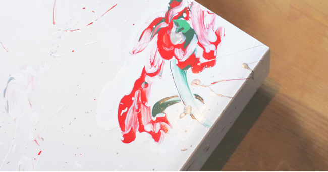 木下友梨香は、花や植物を抽象表現した作品を制作するアーティスト。佐賀の花農家で育ち、幼少期から常に花や植物に囲まれた環境で過ごして、花や植物をモチーフに幼い頃の記憶をスケッチするように作品を制作してきました。
