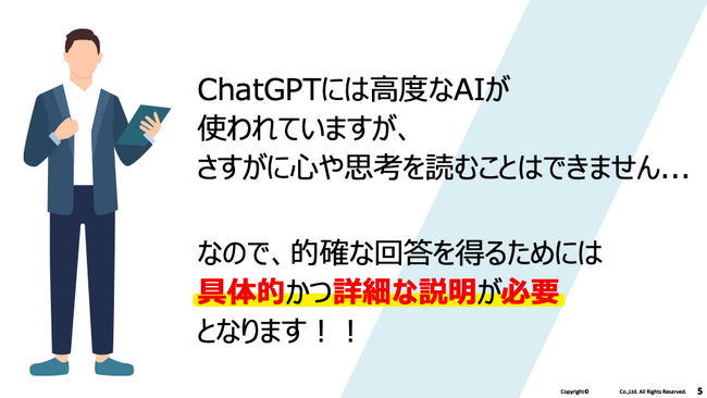 その他のプロンプトのコツについては、以下のページから無料で閲覧・ダウンロードできる資料でご確認いただけます。(登録不要)