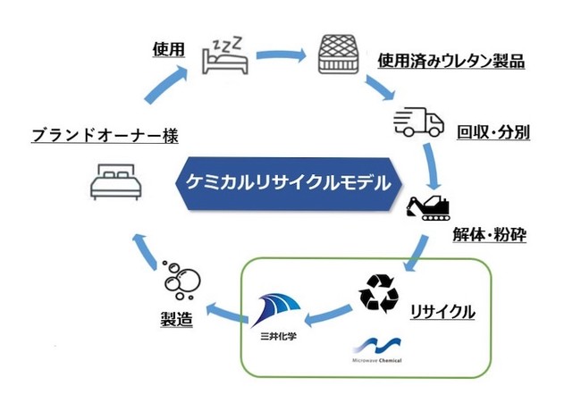 三井化学株式会社(東京都港区、代表取締役社長:橋本修、以下 三井化学)及びマイクロ波化学株式会社(大阪府吹田市、代表取締役社長:吉野巌、以下 マイクロ波化学)は、マイクロ波技術を用いて、マットレスなどに使用される軟質ポリウレタンフォームの廃材を分解し、直接原料にケミカルリサイクルする技術の実用化を目指した取り組みを開始しました。