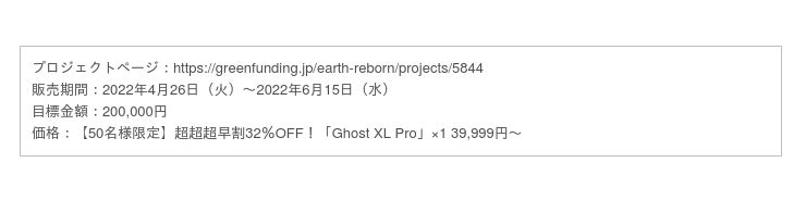 プロジェクトページ→https://greenfunding.jp/earth-reborn/projects/5844