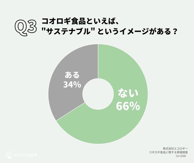 コオロギ食品といえば、”サステナブル”というイメージがある?という設問にYesと回答した方は34%でした。