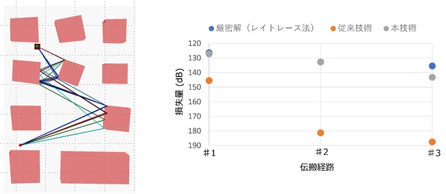 図2.本技術による電波の通り道推定例と推定結果の比較