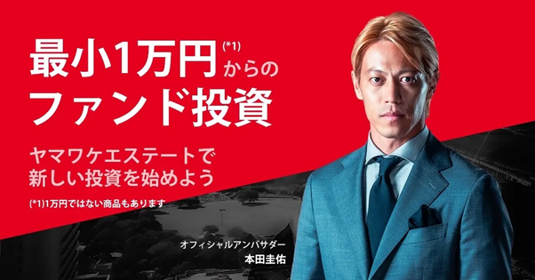 (*2)「ヤマワケエステート」が取り扱う商品は、元本が保証されているものではなく、投資対象となる匿名組合財産の価値の低下等により、お客様が出資した元本の損失が生じる可能性があります。各商品に係る手数料並びにリスク等の内容や性質は投資対象の商品毎に異なりますので、投資の判断はご自身で行うようお願いいたします。