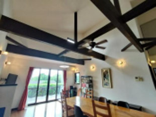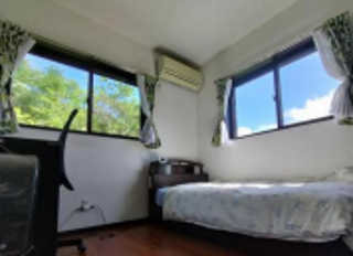 与路グリーンハウスは 2014 年に建築された木造 2 階建、延床面積 200 平米の建物で、留学生が食事や勉強をする広いリビング、留学生用個室が 6 部屋、留学生をサポートする里親の部屋があります。リビングの窓からは請島や色彩豊かな木々や花を見ることができます。