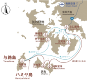 与路島は、奄美群島の有人島の一つで、人口 44 人の小さな島です。島の歴史は古く、他の地域や外国からの交流の拠点となっていたことから、鎌倉時代の遺物や宋時代の青磁の椀などが発見されています。島のシンボルである「ハミヤ島」はテレビ番組の撮影で使用されたこともあります。