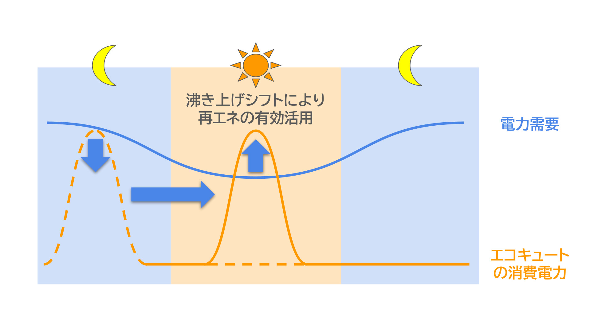 *9 エネルギーシフト:ECHONET Lite規格で定められている遠隔制御することでエコキュートの夜間の沸き上げ湯量の一部を昼間に沸き上げシフトする機能