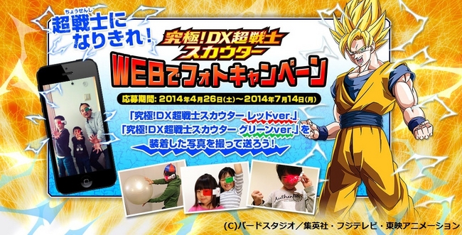 株式会社バンダイ ボーイズトイ事業部は、新商品「究極!DX超戦士スカウター レッドver.」「究極!DX超戦士スカウター グリーンver.」の発売開始と共に、「究極!DX超戦士スカウター WEBでフォトキャンペーン」を2014年4月26日(土)より開始いたします。