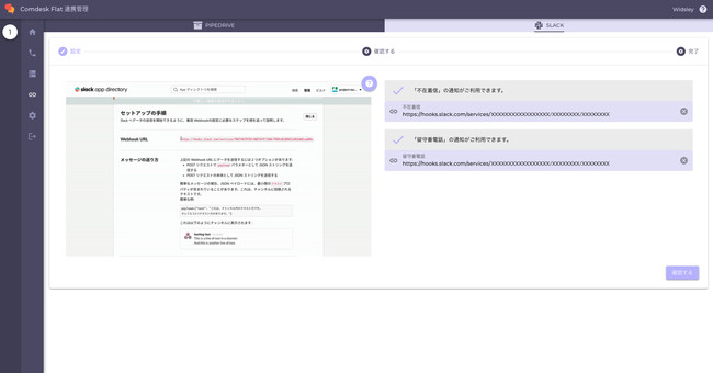 <Comdesk Flat上でのSlack連携の設定画面>