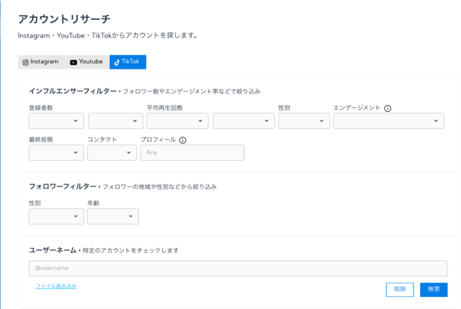 また、ファイル読み込みからすでにお持ちのインフルエンサーリストを読み込むことで