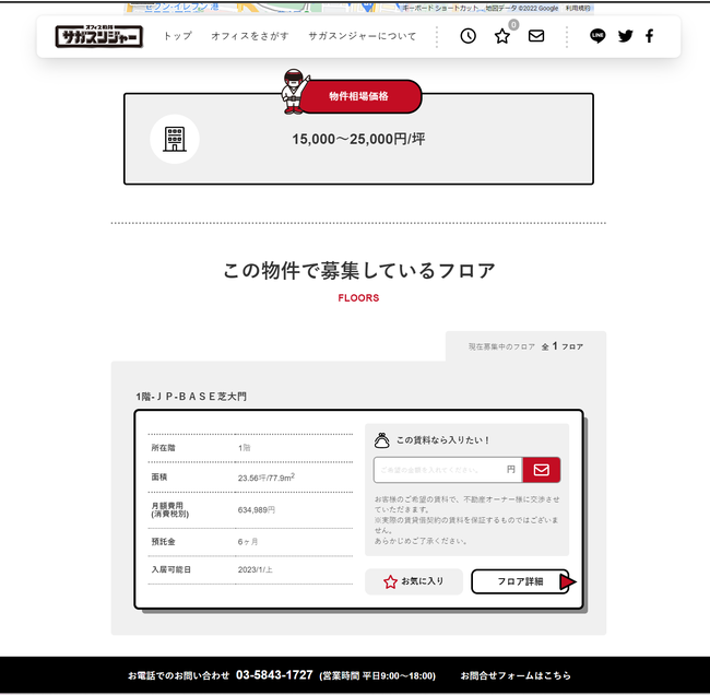 オフィスビルは賃料公開をしていないことが多くあります。「賃料交渉を依頼」から相場金額と照らし合わせ、希望の賃料を入力し、サガスンジャーに「この賃料なら入りたい!」と賃料交渉を依頼していただくことが可能です。