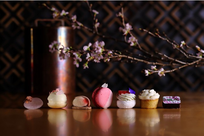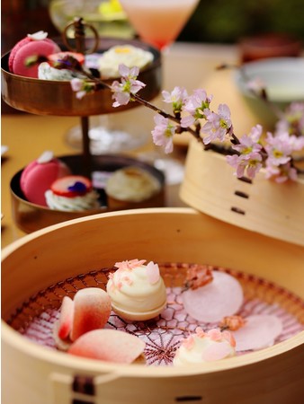 毎シーズンご好評いただいているHOTEL THE MITSUI KYOTOならではの季節の庭園を映した雅なアフタヌーンティー。今年の春もペストリーシェフ板垣雄己(いたがきゆうき)による桜いっぱいのスイーツが勢ぞろいいたしました。桜風味の琥珀糖「水面の桜」や桜咲く春の野山をイメージした「花霞(はながすみ)」、さらにはカモミールやモクレンなど、桜に留まらない春の花々も登場いたします。また、セイボリーにも春らしい色がふんだんに取り入れられています。桜の塩漬けを乾燥させたものをご自身の手に取って散らすなど、テーブル上で桜の花びらが風に散る姿を演出してみませんか。春いっぱいの中庭を臨みながら、TWG Tea製の紅茶と一緒にHOTEL THE MITSUI KYOTOならではのSAKURAアフタヌーンティーを是非お愉しみください。