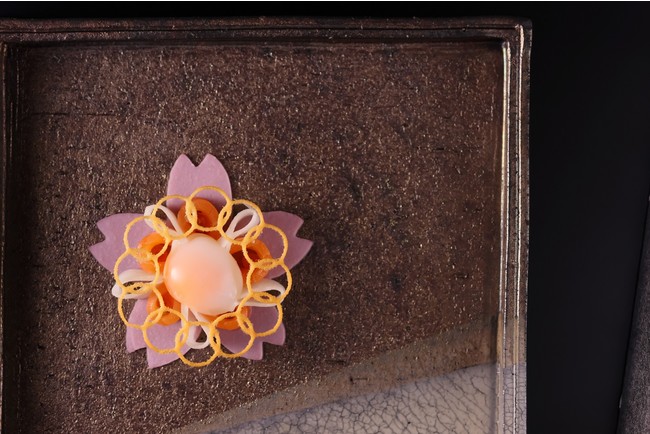 本場フランス・パリの世界的に名高いホテルで研鑽したシェフにより、フランス料理と日本料理それぞれの食材と調理法を融合・昇華させ、素材の秘める力を存分に引き出したイノベーティブな美食の世界へご案内いたします。この春限定のコースの始まりはサクラ鱒。目の前での演出による仕上げにもご期待ください。