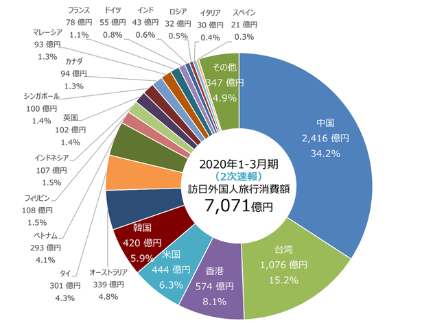 出典:観光庁/訪日外国人消費動向調査 2020年1-3月期の全国調査結果(2次速報)の概要