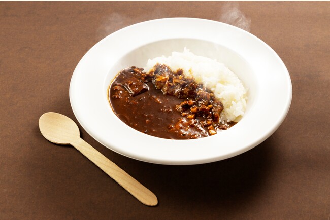 さらに食感や味わいを強化するためダイス状の牛肉や椎茸を。隠し味にはマンゴーやチョコレートを加えて奥深いコクを持たせています。