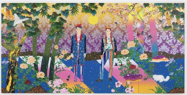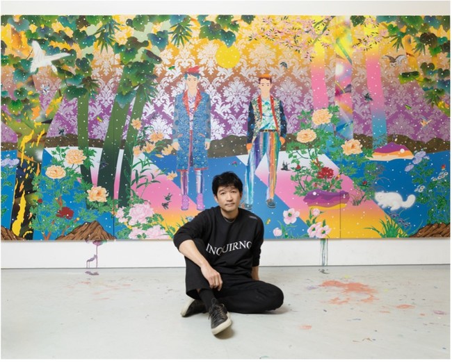 縦2.1メートル、横4.3メートルという、国内で発表された作品としては最大スケールで描かれたこの大作は、松山の代表的なシリーズ「Fictional Landscape」からのキャンバス作品となっており、古今東西の意匠やモチーフが独創的な絵画空間を構成しています。本作品では、今年デビュー25周年を迎える2人組アーティスト・ゆずとコラボレーション。“PEOPLE”というキーワードをコンセプトに、ゆずはニューアルバム『PEOPLE』(3/23発売)を発表。一方の松山は、同じ“PEOPLE”をテーマにゼロから新作「People With People」を制作し、その作品がゆずの『PEOPLE』アートワークにも使用されています。これまで村上隆氏や名和晃平氏など、様々なアーティストとコラボレーションしてきた「ゆず」が、デビューから四半世紀の節目に新たなタッグを組む松山智一の新作「People With People」を是?ご覧ください。(公式HP: https://kotaronukaga.com/ )
