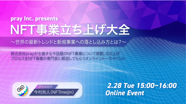 企業の変革パートナーを目指すブティック型コンサルティングファームの株式会社pray(本社:東京都、代表取締役:小林大輝)は、2023年2月28日(火)に新規事業としてのNFT事業の立ち上げをテーマとしたセミナーをRaithing株式会社と共催で開催いたします。