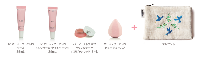 UV パーフェクトグロウ ベース、ビューティーパフ、オリジナルポーチ付きの限定キットも数量限定発売。