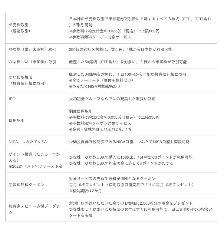 当社で取り扱う商品等のお取引にあたっては、商品ごとに所定の手数料等をご負担いただく場合があります。国内株式等(株式、ETF、REIT、インフラファンド等の委託取引)のお取引、および国内株式等の信用取引(以下、信用取引といいます)にあたっては、約定代金に対して0.033%(税込)の委託手数料がかかります。国内株式等の取引の委託手数料の上限は660円(税込)、信用取引の委託手数料の上限は330円(税込)となります。また信用取引では、別途管理費、名義書換料、権利処理手数料を、加えて、買付の場合、買付代金に対する買い方金利を、売付けの場合、売付け株券等に対する貸株料および品貸料をご負担いただきます。ひな株(単元未満株式等の店頭取引)のお取引にあたっては、対価(購入対価・売却対価)のみを受払いただき、手数料はいただきません。なお、購入対価は株価に一定のスプレッド(差額)を上乗せした価格、売却対価は株価から一定のスプレッド(差額)を差し引いた価格になります。当社のスプレッドは、原則、株価に0.5%を乗じた価格になります。IPO(新規公開株式)では、購入対価のみお支払いいただきます。投資信託のお取引にあたってはご購入時および換金時にご負担いただく費用はございませんが、銘柄によって解約時に基準価額に対して信託財産留保額(最大0.3%)が控除されます。また、投資信託の保有期間中に間接的にご負担いただく費用として、運用管理費用(信託報酬)(最大2.09%(年率・税込)等の諸経費等がございます。ひな株USA(外国株式等の店頭取引)のお取引にあたっては、対価(購入対価・売却対価)のみを受払いいただき、手数料はいただきません。なお、購入対価は、直近の米国各証券取引所(NYSE、NASDAQ)における終値またはアフターマーケットでの市場価格をもとに当社が決定する基準価格に一定のスプレッド(差額)を上乗せした価格、売却対価は基準価格から一定のスプレッド(差額)を差し引いた価格になります。また実際には円貨で受払いいただくため、購入対価は購入用の約定為替を乗じた価格、売却対価は売却用の約定為替を乗じた価格になります。なお当社のスプレッドは、基準価格に通常0.7%(最大で1.5%)を乗じた価格になります。また約定為替にもスプレッドがあり、基準為替に通常30銭(最大で50銭)を加減算した為替レートになります。