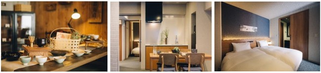 『MIMARU SUITES 京都四条』は、2つ以上の寝室とリビング・ダイニングスペースが分かれていて、プライベート空間を確保した広い客室が特長。ロビーに構える「みまる道具店」には、うつわやカトラリー、調理道具、暮らしを豊かにするさまざまな道具を揃え、宿泊者は、実際に手に取り、バイキングのようにお気に入りを見つけて、キッチン・ダイニングつきの客室内でお楽しみいただけます。(※貸出無料。数に限りがございます。ご利用時フロントにお申し出ください。)
