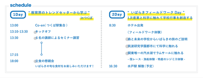本イベントは、その活動の一環として2023年8月24日(木)・25日(金)に開催します。教育現場の第一線で活躍されている講師5名をお招きし「探究学習とは何か」について紐解くセミナーと懇談会、筑波研究学園都市や関東唯一の汽水湖でのフィールドワーク体験を行います。定員は先着40名です。申し込みサイトからご応募ください。