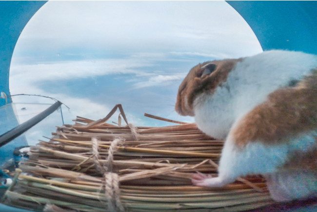計測データからキャビン内環境は実験過程を通じて、酸素濃度23〜25%、温度24〜29度、内圧970〜1030hPaに維持されていたことを確認。キャビン内に設置したカメラには、ほぼ地上と同じ環境の中で、夜行性の動物らしくすやすや眠るハムスターの姿が写っていました。